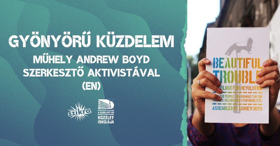 > Hihetetlen, hogy ezzel zárhatjuk az évet: a nemrég általunk lefordított Gyönyörű küzdelem <https://kozeletiskolaja.hu/termek/gyonyoru-kuzdelem-eszkoztar-az-ellenallashoz/> (Beautiful Trouble) című aktivista kézikönyv írója-főszerkesztője, az amerikai Andrew Boyd kreatív műhelyet tart nálunk!