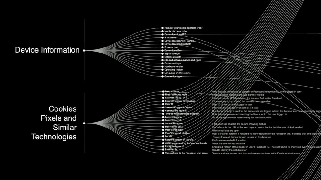 This work is the result of a collaboration between Vladan Joler, an artist specialized in mapping the invisible infrastructures of the Internet, and Katarzyna Szymielewicz, a lawyer, human rights and technology expert and vice-president of the NGO network European Digital Rights. The duo set out to unveil the secrets of the world’s largest digital social network. Does Facebook manipulate and identify your feelings? Is it able to recognize your personality type, habits, interests, political views, income level? Does it use all that information to reach you with personalized ads or sponsored content? How exactly does it work?The work sheds light on the invisible processes that take place inside Facebook. Inside this black box, non-transparent algorithms decide what kind of content will become part of our reality, what will be censored or deleted, what ideas will be spread and what news will have more visibility. They also define new forms of work and exploitation. Users are no longer customers. They only provide data, which serve as raw material for the production of digital profiles, a key product in Internet markets.